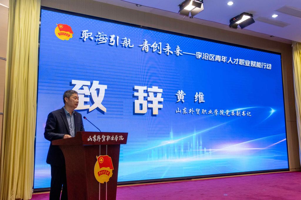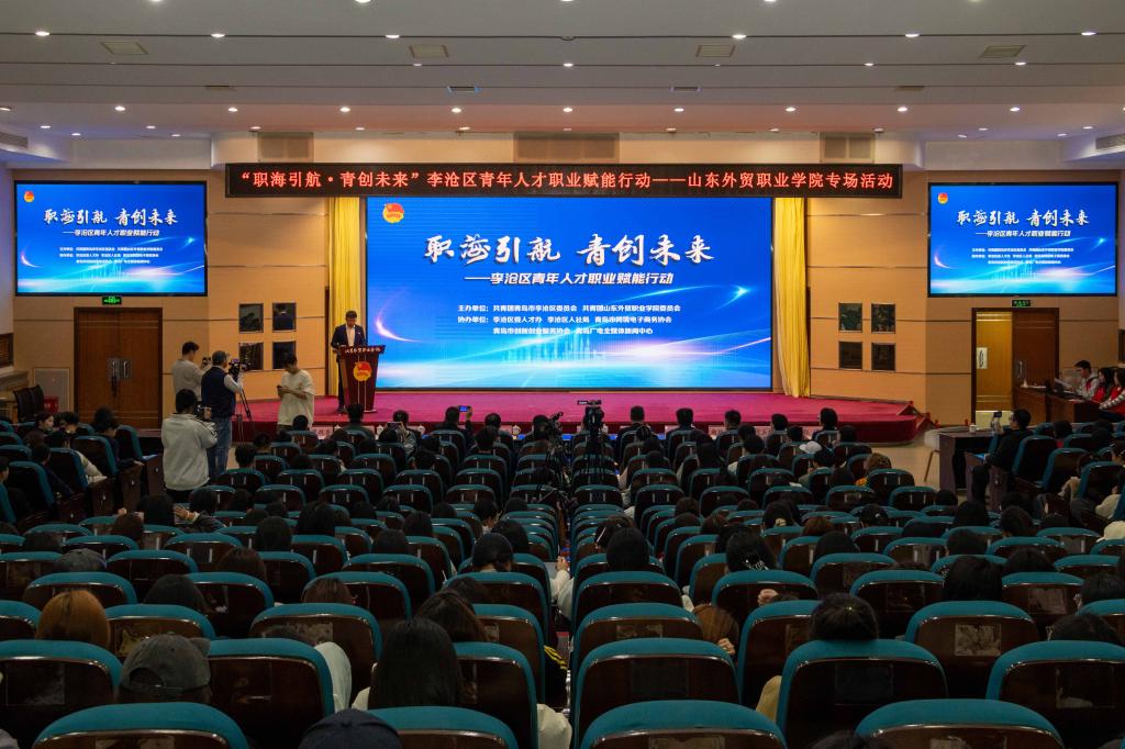 为贯彻落实习近平总书记关于青年工作的重要论述,推动青年人才集聚、创新创业培育、就业服务优化等落地见效,11月7日下午,由学院团委和李沧团区委联合主办的“职海引航 青创未来”李沧区青年人才职业赋能活动——买球体育平台专场在北校区学术报告厅成功举办。共青团青岛市委副书记朱圣坤、李沧区政府副区长胡文国,李沧团区委相关领导及5位来自各行各业的优秀企业家出席活动,学院党委副书记黄维、学生工作处、团委主要负责同志及400余名师生共同参加。
