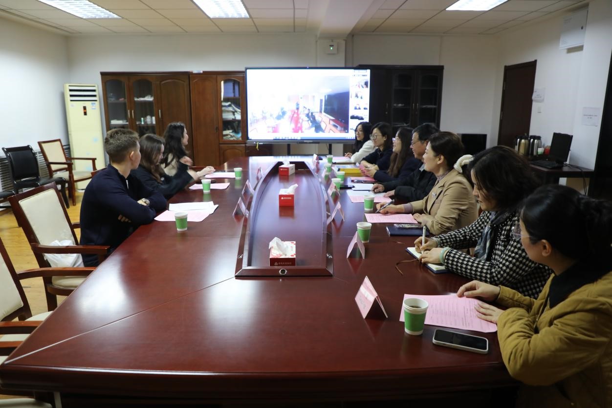 仪式采用线上线下结合的方式举行。东哈萨克斯坦国立大学董事会副主席、副校长Rovnyakova Irina Vladimirovna,董事会成员、副校长Alimbekova Nurlana Baurzhanovna等校方代表线上参会;我院国际交流合作处、国际贸易系师生代表与来院交流学习的交换生在现场参会。