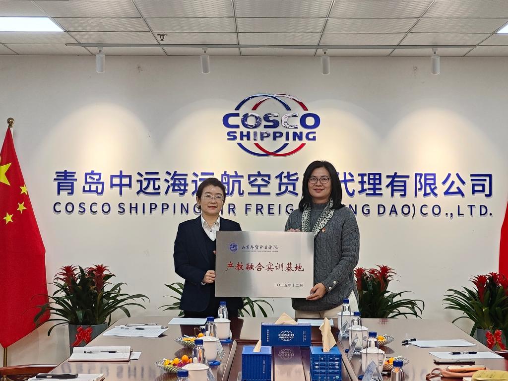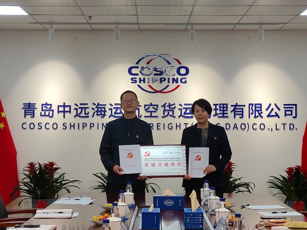 2025 年 12 月 3 日上午,国际运输与物流系与青岛中远海运航空货运代理有限公司党建共建暨校企合作签约仪式在青岛中远海运航空货运代理有限公司会议室隆重举行。青岛中远海运航空货运代理有限公司党委书记、总经理孙秋月,党委委员、副总经理戴巧玲等企业高管与国际运输与物流系领导班子及教研室负责人等老师共同出席活动,以党建为纽带开启校企协同育人新篇章。