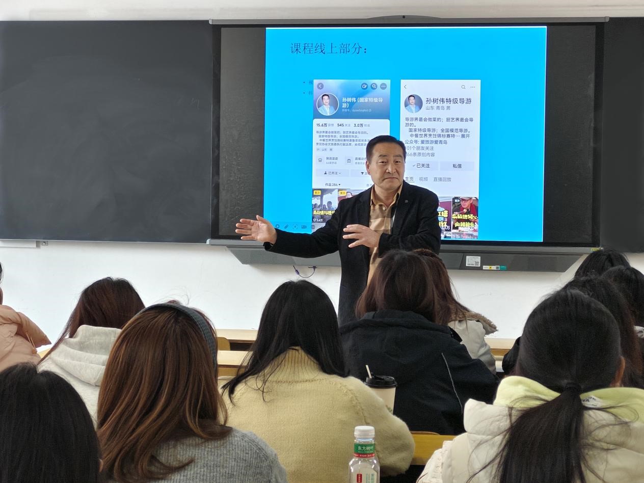 3月12日下午,我院特聘产业导师孙树伟走进课堂,为2025级旅游管理专业学生当面授课,以丰富的行业一线经验为学子们搭建起理论与实践衔接的桥梁。
