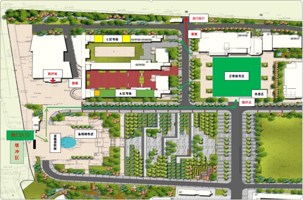 3.考生到达相应候考区,请按照工作人员指引及标识牌进行站位,考生之间保持1米间距,避免人员聚集现象。