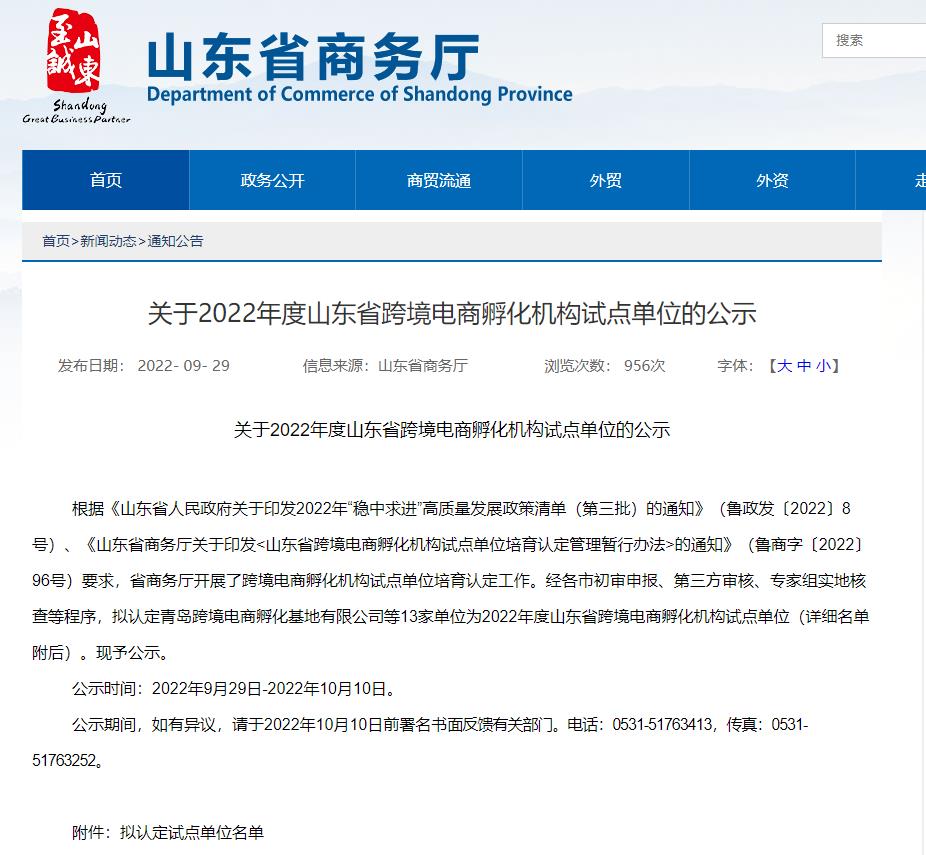 近日,山东省商务厅发布《关于2022年度山东省跨境电商孵化机构试点单位的公示》通知,我院申报的跨境电商孵化机构成功入选。